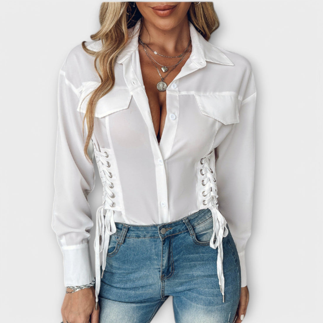 Joana - Blusa elegante de manga larga con un escote puntiagudo